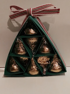 Even though I can't give you the dimensions, I can tell you that I used all Stampin' Up! products to make this. Emerald Envy cardstock, Liquid Multipurpose Glue (also known as Tombow glue), and a length of Quilted Christmas Ribbon. Oh, and of course you'll need Hershey's kisses
